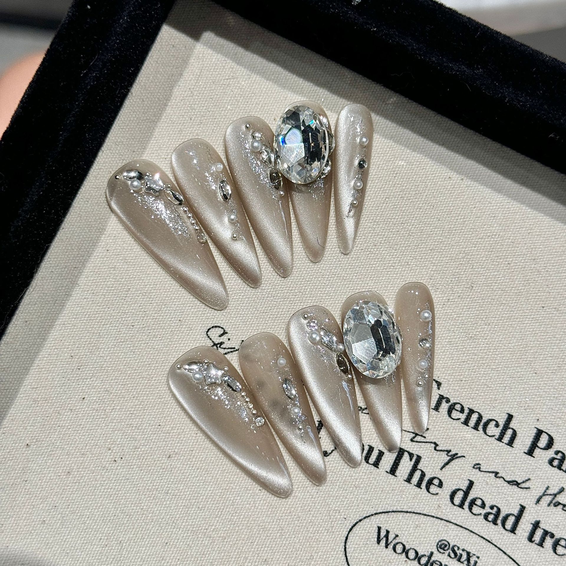 白月光 | 水滴尖 | 清冷千金贵气感 | 清透侧光猫眼 | 手工戴美甲